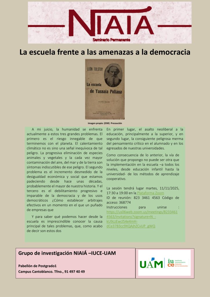 La sesión tendrá lugar martes, 11/11/2025, 17:30 a 19:00 en la Plataforma Zoom